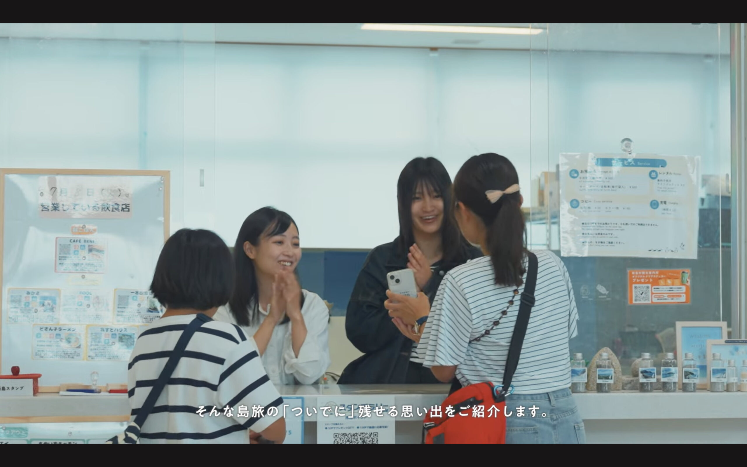 この動画は、島々の絶景や特産品といった魅力を伝えながら、スタンプラリーの使い方や景品(ノベルティ)の内容を、親子と島民の交流を通して分かりやすく紹介する内容となっています。
